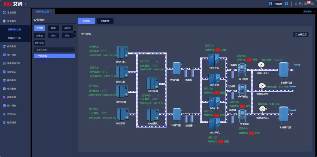 对各机电设备状态实时/历史参数进行实时监控和集中管理,保障设备可靠稳定运动,解决了工业企业存在公辅设备种类繁多、运维监控占用大量人力物力的痛点。