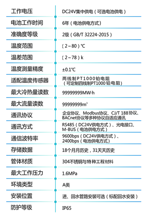 ? 应用场景更全面:可兼容供回水管安装、兼容正反流向安装、兼容RS485、M-BUS等多种通讯方式,内置阀门控制功能等,覆盖范围更广。