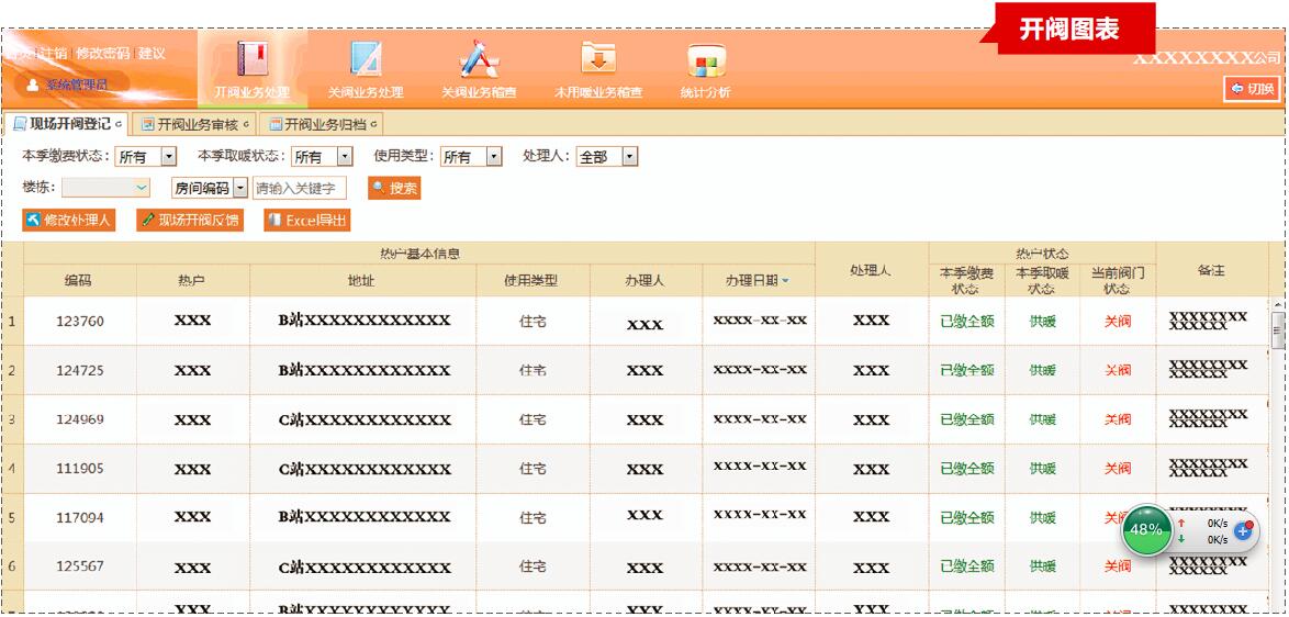 统计分析:具备统计分析功能,以图表形式指导工作人员展开关阀业务处理,提高开关阀核查效率。