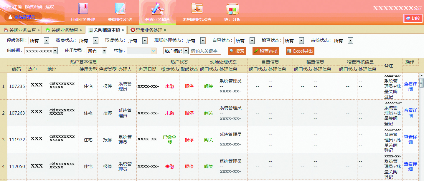 未用暖业务稽查:对未用暖热户单独进行筛查,并将筛查结果归档定性,将大大减少私开阀门的用户数;
