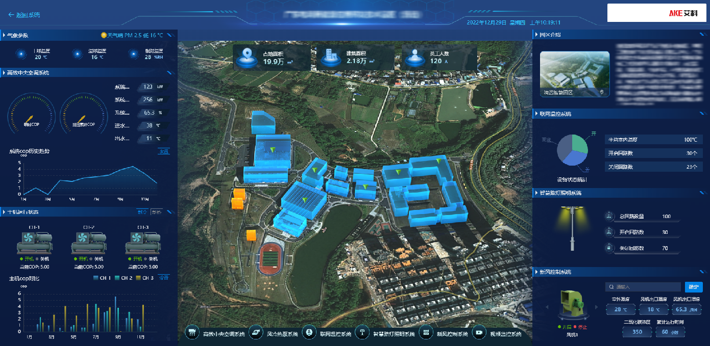 部署园区综合智慧能源管理平台,该平台针对园区级应用需求,为客户提供了“综合驾驶舱”、“中央空调子系统”、“风冷热泵子系统”、“联网温控子系统”、“路灯照明子系统”、“新风控制子系统”、“视频监控子系统”等7大子系统的综合监控与服务,提升了客户的管理效率,并向数字化、信息化、智慧化模式大幅度迈进。