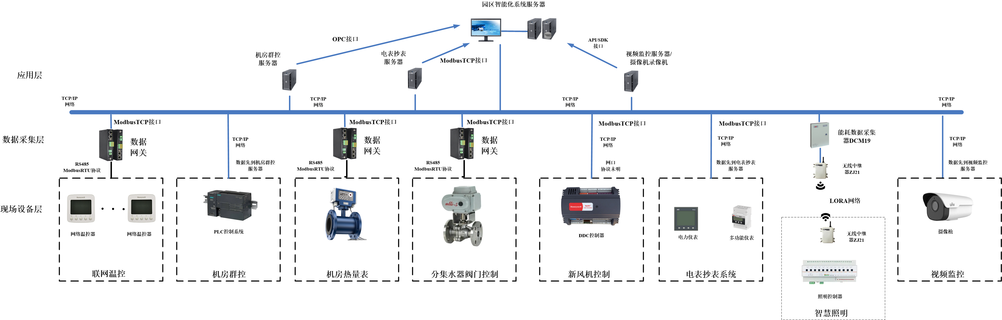 机房群控服务器、视频监控服务器数据提供软件数据接口,将数据集成到园区综合智慧能源管理平台。