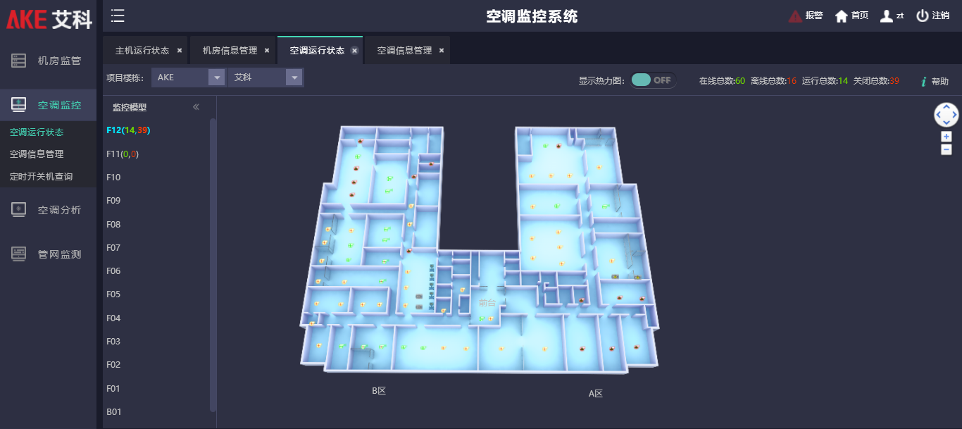 设备分布在建筑不同区域,面积大,设备数量多,运维人员难以及时了解设备运行状态,人工管理难度大。